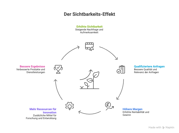 Eine Kausalkette, die euer gesamtes Business skaliert: Mehr Relevanz am Markt → Qualifiziertere Anfragen → Höhere Margen → Mehr Ressourcen für Innovation → Noch bessere Ergebnisse.